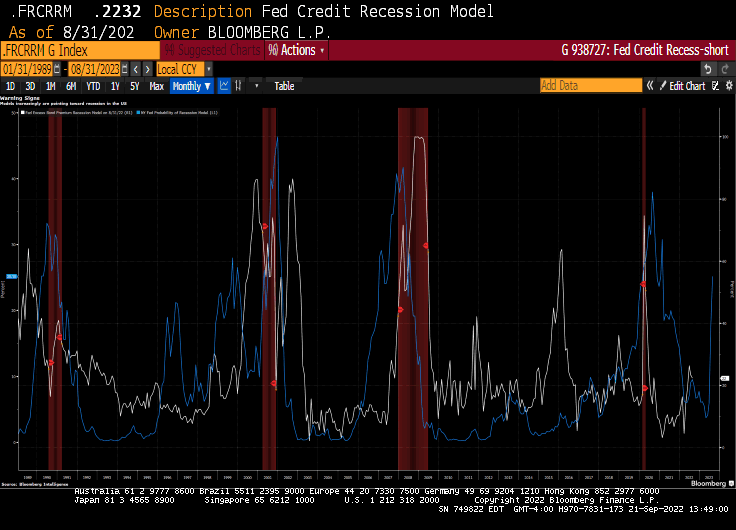 Of course, the risk of a recession (dark blue line) is on the increase.