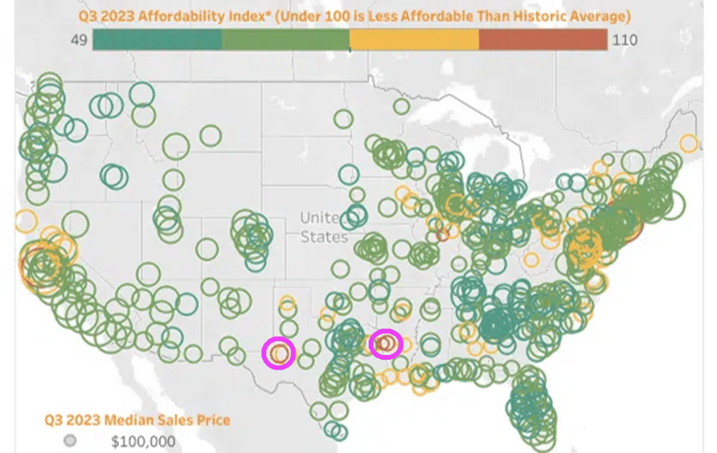 Although the Attom data is from Q3 2023, not much has changed. Under Biden (and his HUD Secretary Marcia Fudge, Fed Chair Jay Powell, and Treasury Secretary Janet Yellen), I did manage to find TWO AFFORDABLE areas to live: Shreveport Louisiana and Midland/Odessa Texas. The housing market remains unaffordable for millions of Americans.