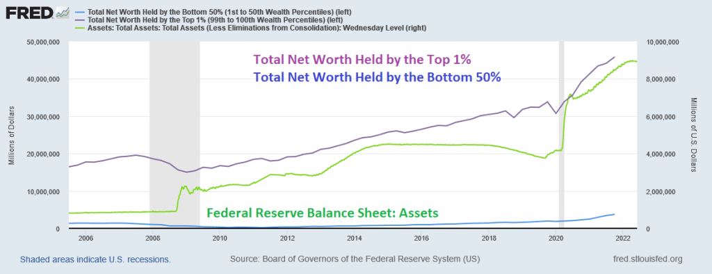 The Federal Reserve’s monetary “policies” have benefited the top 1% and homeowners relative to the bottom 50% (who often rent and got clobbered with 20% growth in rents).