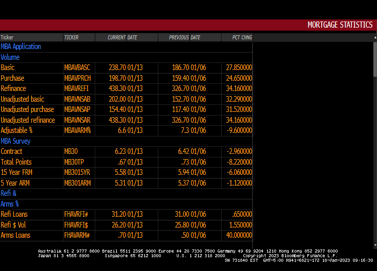 Mortgage applications increased 27.9 percent from one week earlier, according to data from the Mortgage Bankers Association’s (MBA) Weekly Mortgage Applications Survey for the week ending January 13, 2023. But mortgage applications are 60% lower than the same week last year.
