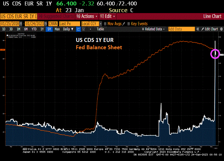 In any case, The Federal Reserve’s quantitative-tightening program risks being propelled toward an early end as US politicians bicker in Washington over raising the national debt limit, according to some economists and bond-market participants. As of this morning, the US credit default swap (1-year CDS) remains elevated signaling a positive probability of a US debt default. (CDS represents the price of insuring against a default).