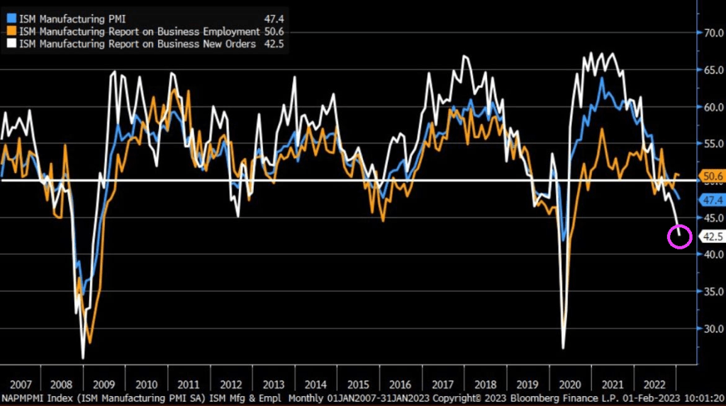 Speaking of trends, check out ISM Manufacturing New Orders. Lowest since Great Recession of 2008 (if I exclude the government economic shutdown Covid recession).