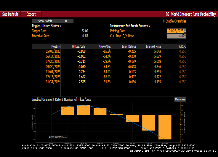Fed Funds Futures are pointing to a peak rate of 4.90% by the June ’23 FOMC meeting, then a pivot (despite denials from Fed talking heads).