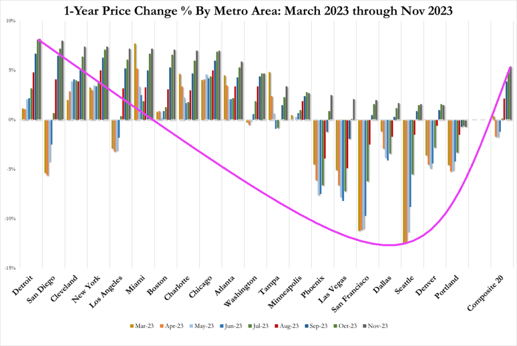 The result: not only has the market rapidly priced out what if formerly saw as many as 6 rate cuts in 2024, but growing speculation that a rate cut may not come at all unless the Fed tightens some more first (and with the S&P500 now over 5000, it is pretty clear that the market has already priced in virtually all rate cuts and has cornered the Fed).