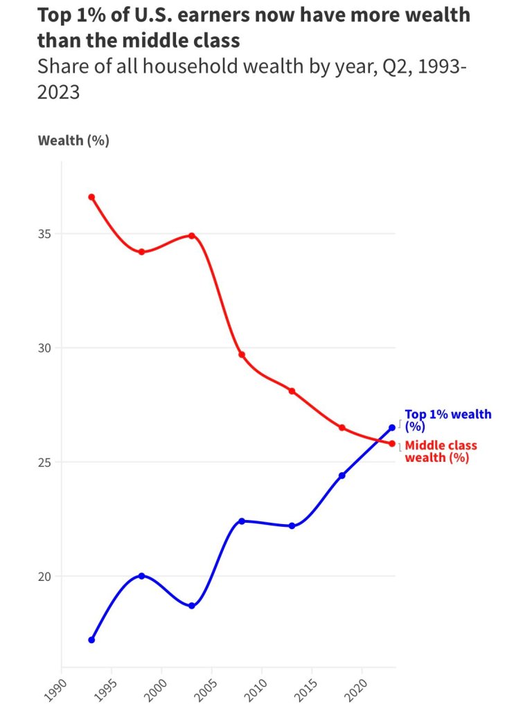 The end result? The top 1% of earners now have more wealth the the middle class.
