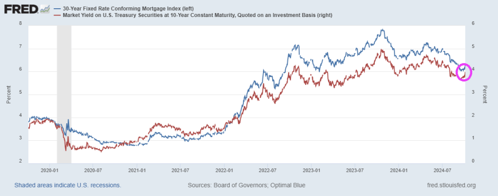 The result? US conforming 30-year mortgage rates are up 8.3% since last year and up a whopping 141% since the beginning of 2021 (the year Biden was selected to be President).