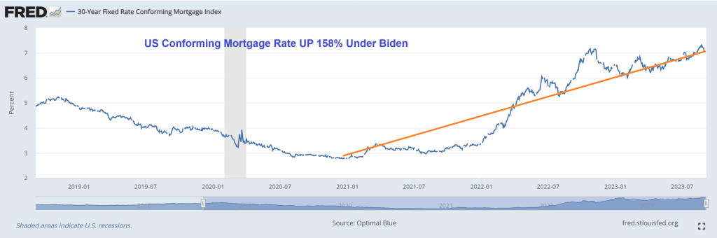 The US conforming mortgage rate is UP 158% under Bidenomics.