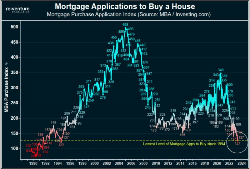Speaking of Bidenomics, US mortgage purchase demand just declined to the lowest level in 28 years.