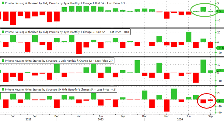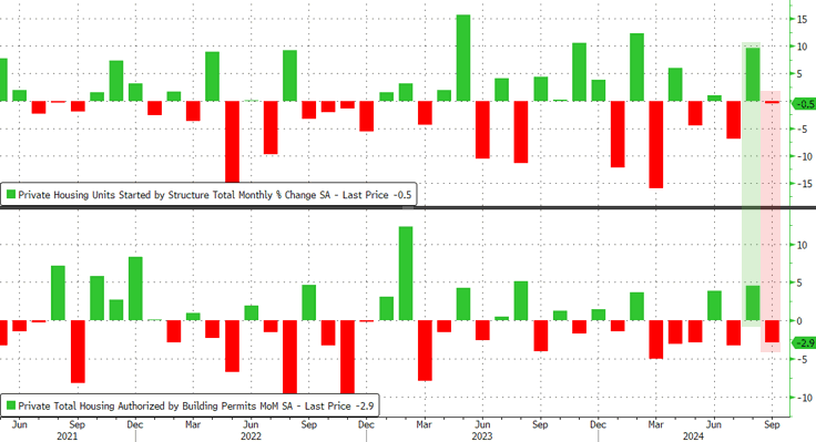 After surprising top the upside in August, Housing Starts and Building Permits disappointed in September, declining more than expected (-0.5% MoM and -2.9% MoM respectively)…