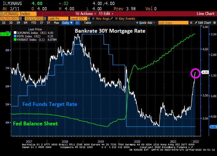 But Bankrate’s 30-year mortgage rate is rising like a comet, similar to the 2-year Treasury yield.