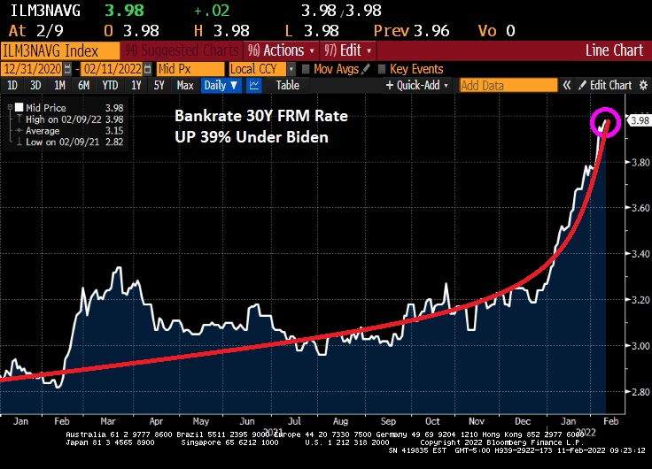 And then we have mortgage rates. Bankrate’s 30Y mortgage rate is up to almost 4%, up 39% since the beginning of 2021.