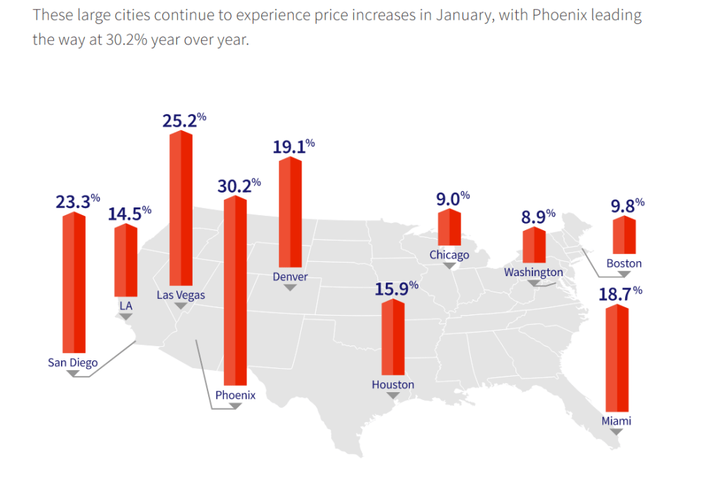 Phoenix, Las Vegas and San Diego are booming. But Chicago and Washington DC are growing at near 9% YoY.