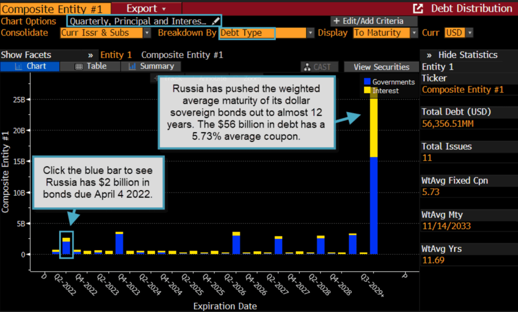Russia has pushed the weighted average maturity of its dollar sovereign bonds out to almost 12 years.