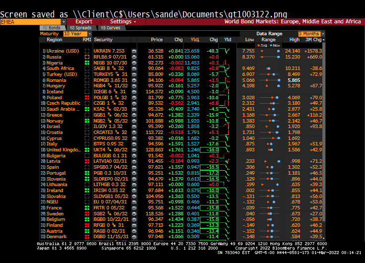 Ukraine’s 10-year yield has plummeted by -48.3 bps this morning.