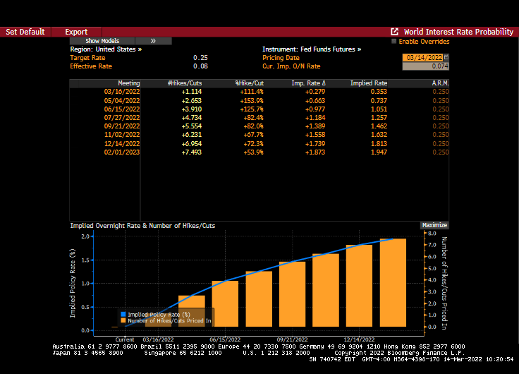 Fed Funds Futures are signalling 7 rates increases by the February 1, 2023 meeting.