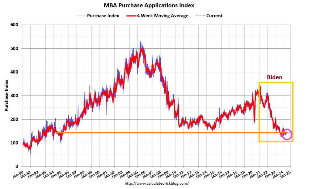 I would like to see Kamala Harris explain why mortgage purchase applications are down -60% under Biden/Harris Presidency. Other than a word salad answer. Or Cottage Cheese.