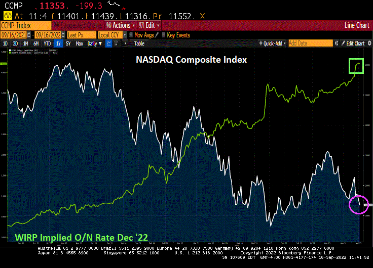 Futures are down with the prospect of a 75 basis point bump in rates tomorrow. The Dow Jone Mini is down -167 points.