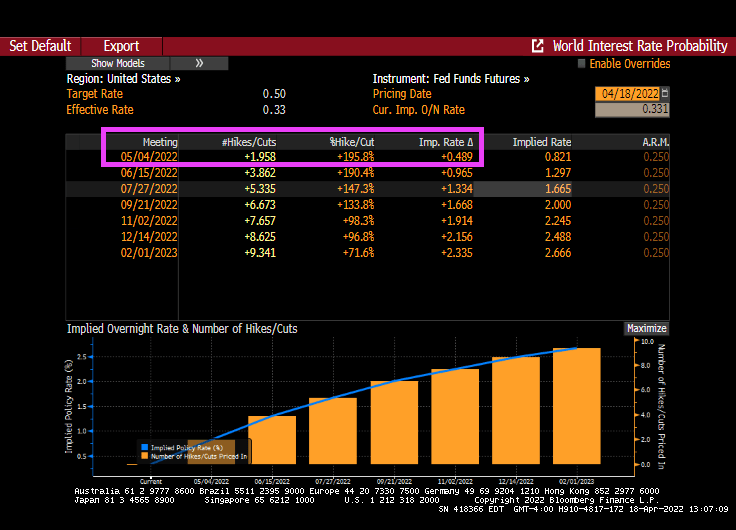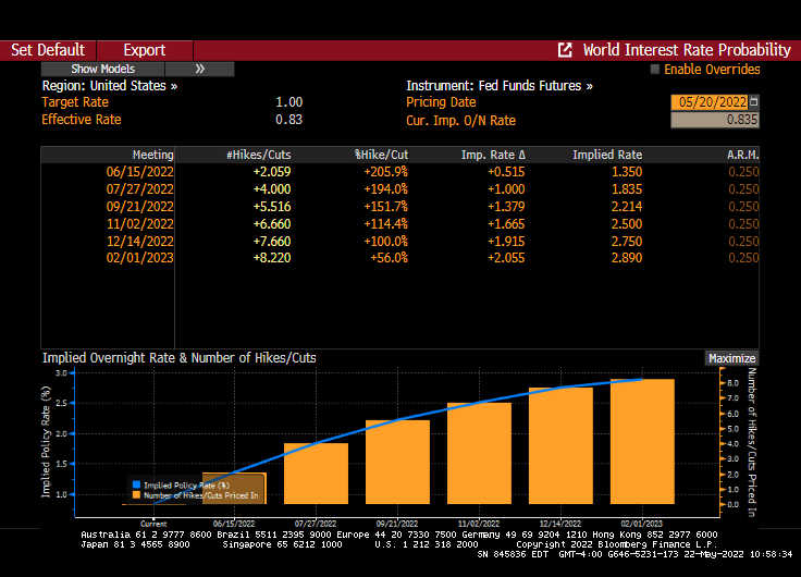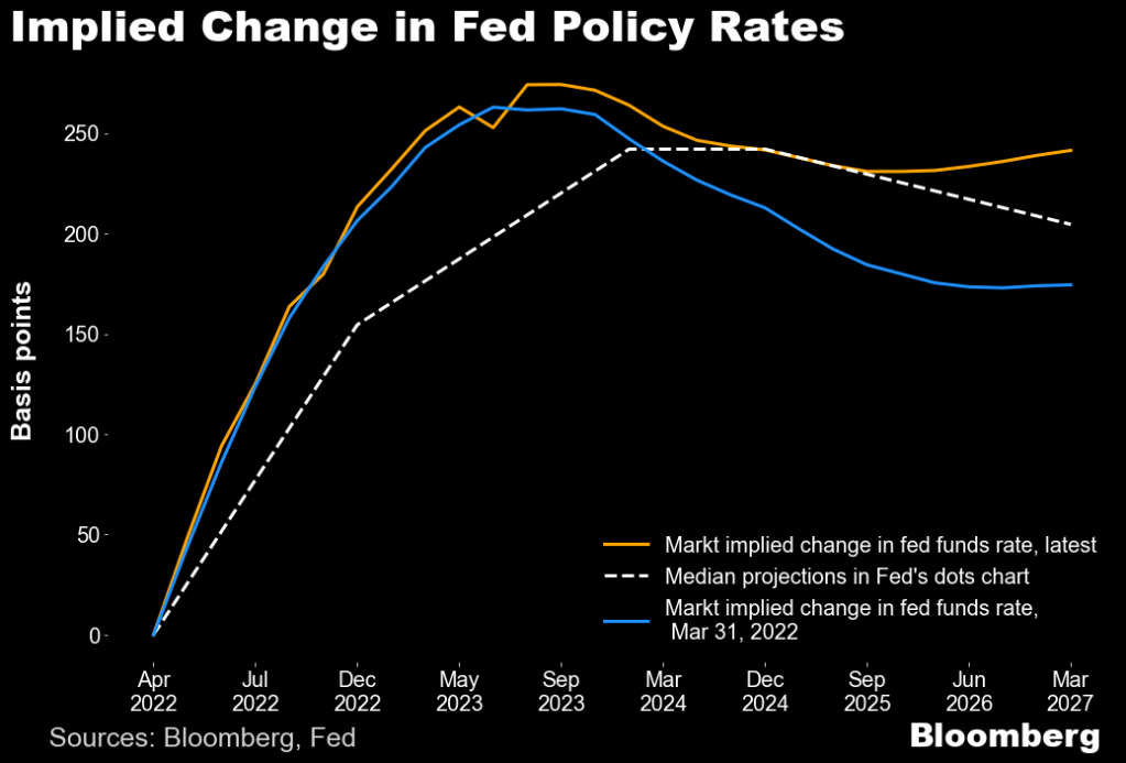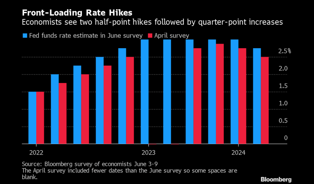 The Fed is expecting two half-point hikes followed by quarter-point increases.