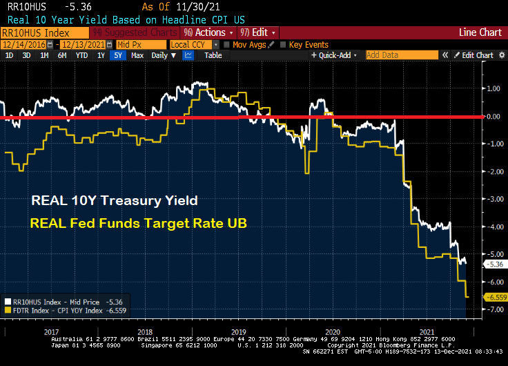 If we look at the REAL 10-year Treasury yield and REAL Fed Funds Target Rate, they are both negative.
