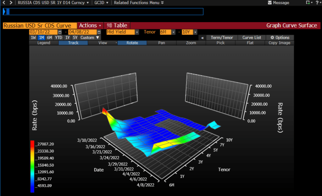 Another chart from hell is the Russian USD Credit Default Swap (CDS) curve. It is spiking at over 20,000.