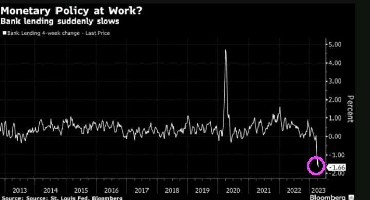 And regional banks (not the TBTF national banks) continue to suffer. The Bank Term Funding Program (1 of 2) is skyrocketing as The Fed cranks up rates to fight BidenFedflation (a combination of excessive monetary stimulus by The Fed and Biden’s lousy economic policies) and M2 Money growth crashes.