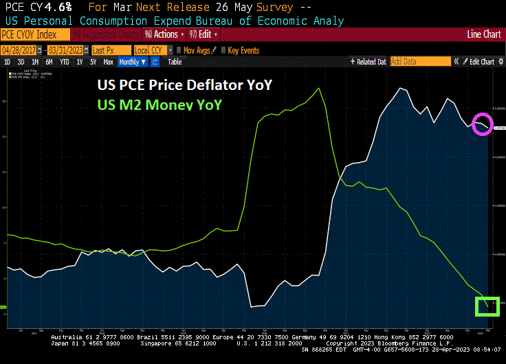March’s Personal Consumption Expenditures Core Prices remain HOT despite The Fed crashing M2 Money growth. PCE Core price growth remained elevated at 4.6%.