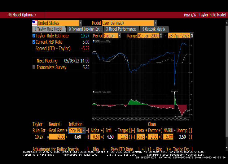 The Taylor Rule infers a Fed Funds target rate of 10.27% Alas, we will never get there.