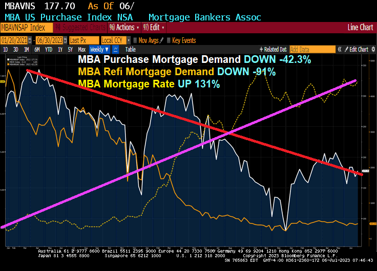 Joe Biden, or “Blow Biden” after the cocaine was discovered in the White House the other day, owns the abysmal mortgage and housing market thanks to The Fed fighting inflation caused by Bidenomics (massive Federal spending and massive Fed stimulus).