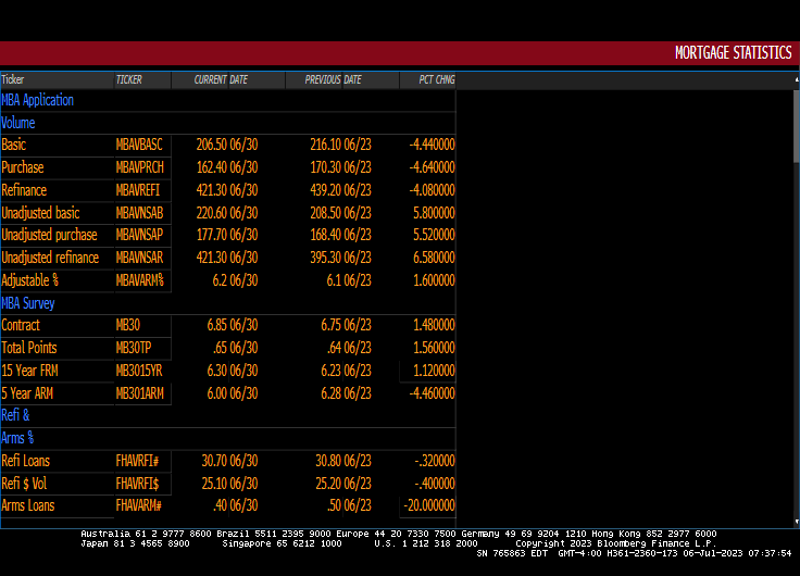 Mortgage applications decreased 4.4 percent from one week earlier, according to data from the Mortgage Bankers Association’s (MBA) Weekly Mortgage Applications Survey for the week ending June 30, 2023. Last week’s results included an adjustment for the Juneteenth holiday.