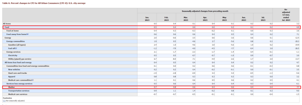 Shelter inflation up 7.69% YoY in July vs 7.83% in June, lowest since Dec 22; also up 0.43% MoM, lowest monthly increase since Jan 22