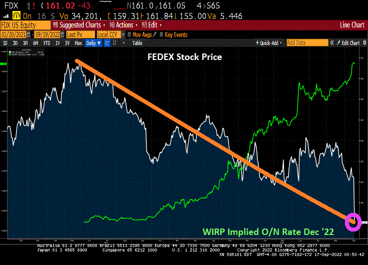 Then we have Federal Express which plunged -43.85 points on Friday. I use this an example on how inflation begat Fed tightening that begat an economic slowdown.