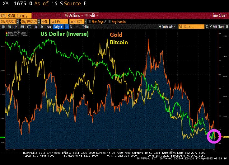 Then we have Gold and Bitcoin relative to the INVERSE of the US Dollar since Biden was installed as President.