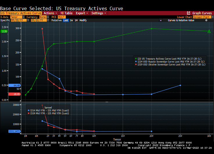 On an unrelated note, the US Treasury yield curve is strongly UPWARD sloping, while Russia’s and Ukraine’s yield curves are inverted and collapsing.