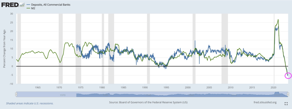First, look at the crashing bank deposit problem. Well, the solution is for The Fed to fire up the money printing press! Keep on printing!